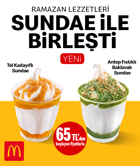 - Görselde yer alan fiyat bir adet yetişkin boy Tel Kadayıflı Sundae veya Antep Fıstıklı Baklavalı Sundae için geçerlidir.