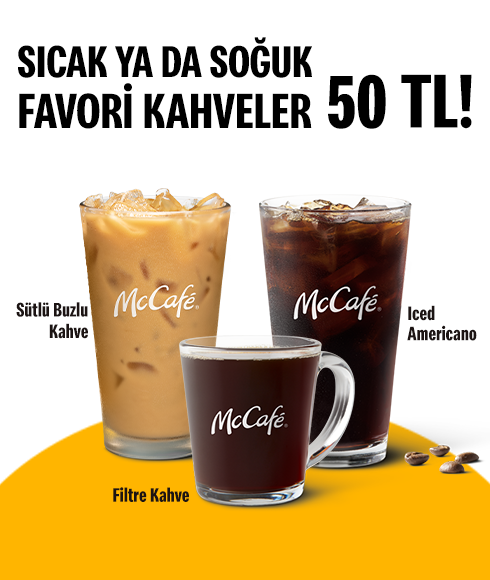 - Kampanya, bir adet Küçük Boy Sıcak Çikolata, bir adet Orta Boy Americano, bir adet Orta Boy Filtre Kahve, bir adet Orta Boy Iced Americano, bir adet Orta Boy Buzlu Kahve, bir adet Orta Boy Sütlü Buzlu Kahve seçimleri ile sınırlıdır. Americano ürünleri, içinde McCafé bulunan restoranlarda satışa sunulmaktadır.