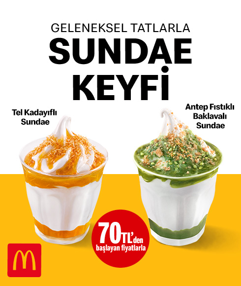 - Görselde yer alan fiyat bir adet yetişkin boy Tel Kadayıflı Sundae veya Antep Fıstıklı Baklavalı Sundae için geçerlidir.